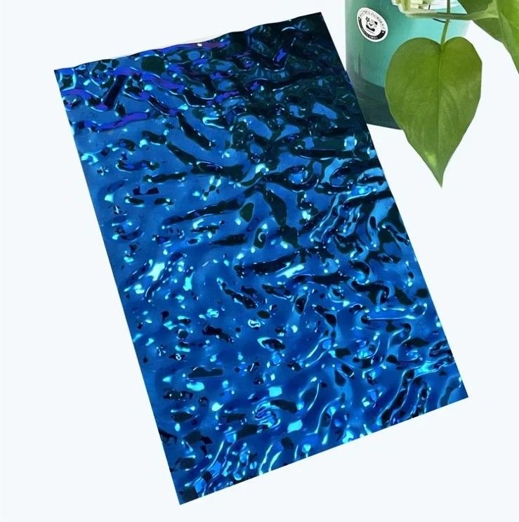 Sapphire Blue Small Stainless Steel Water Ripple Sheet ist ein dekoratives Material, ein kleines Wasserrumpfblatt aus Edelstahl mit einem blauen Edelstein-ähnlichen Aussehen.Dieses Material wird üblicherweise für Dekorationen und Designs verwendet, und sein Aussehen kann den Menschen einen Wellenwirkung verleihen und gleichzeitig saphirähnliche Farben aufweisen.